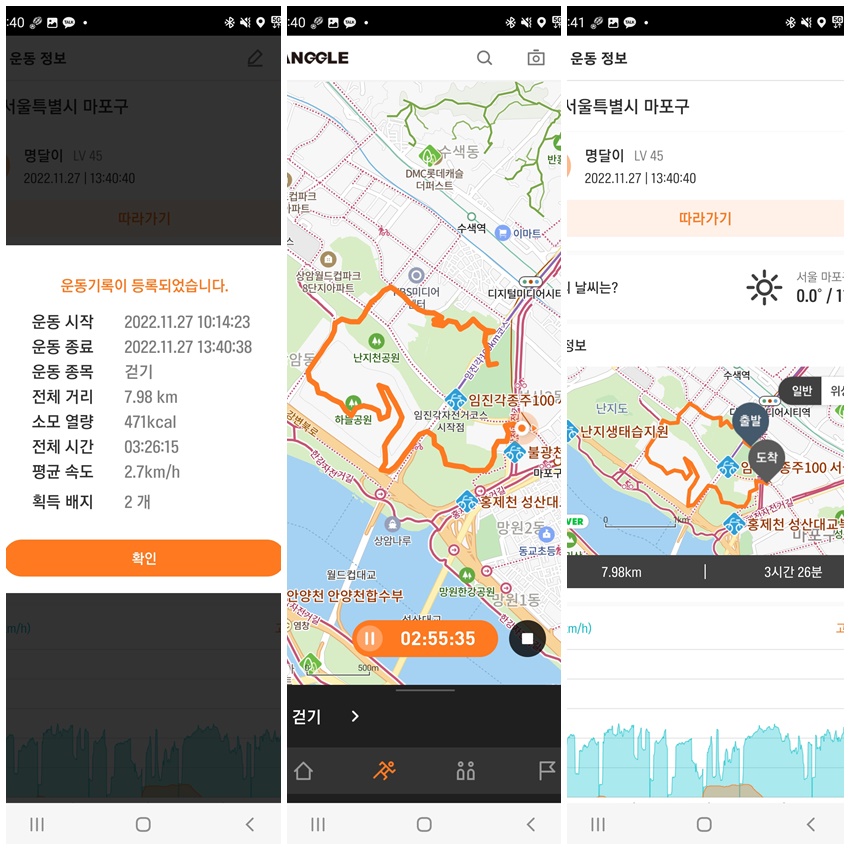 걷는 길이는 약 8km 전체시간은 샤방 샤방 3시간 반정도에 걸음수로는 18,000 보 정도 되었다