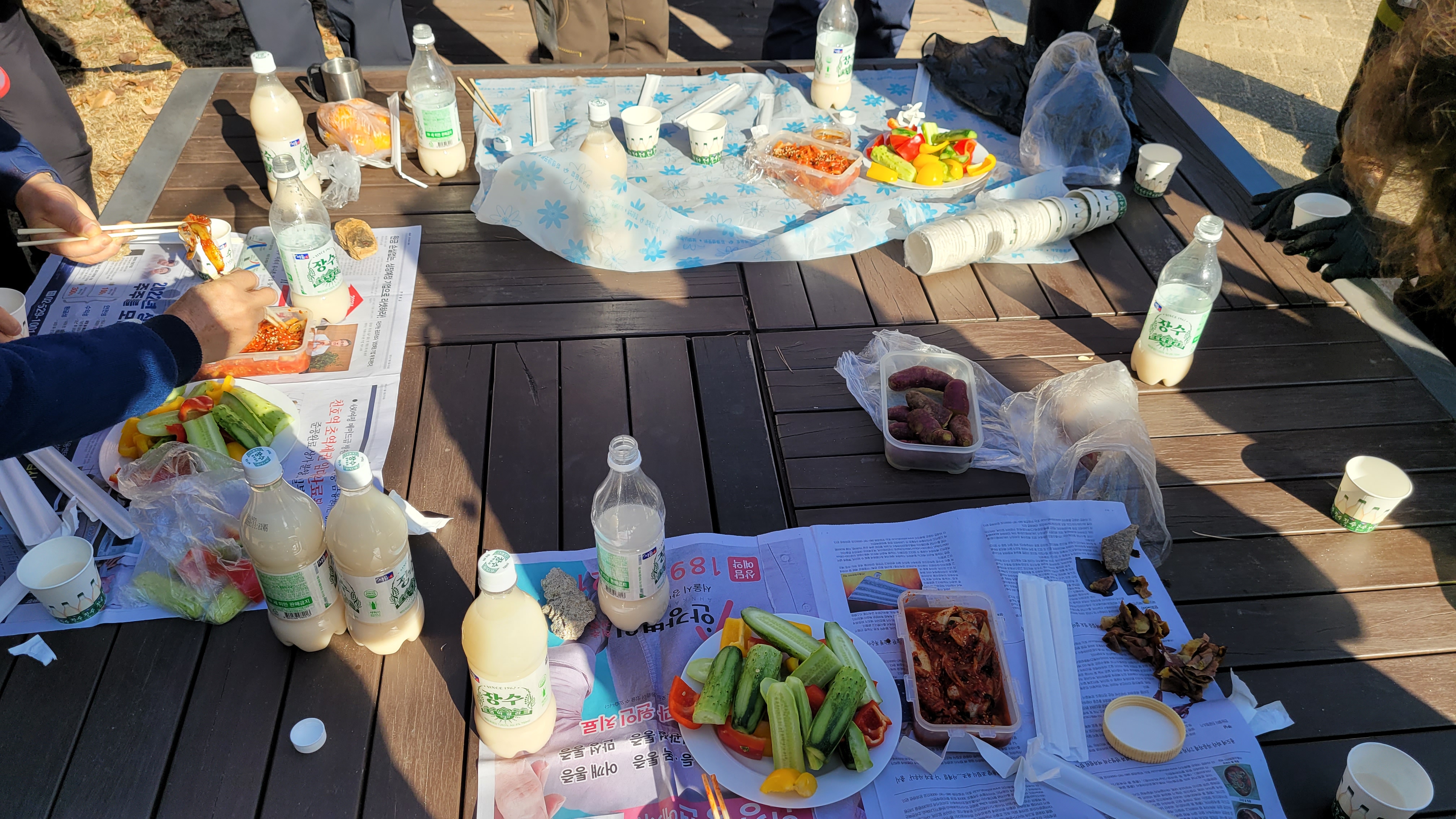 난지천공원 쉼터에서 가볍게 막걸리와 간식도 먹고