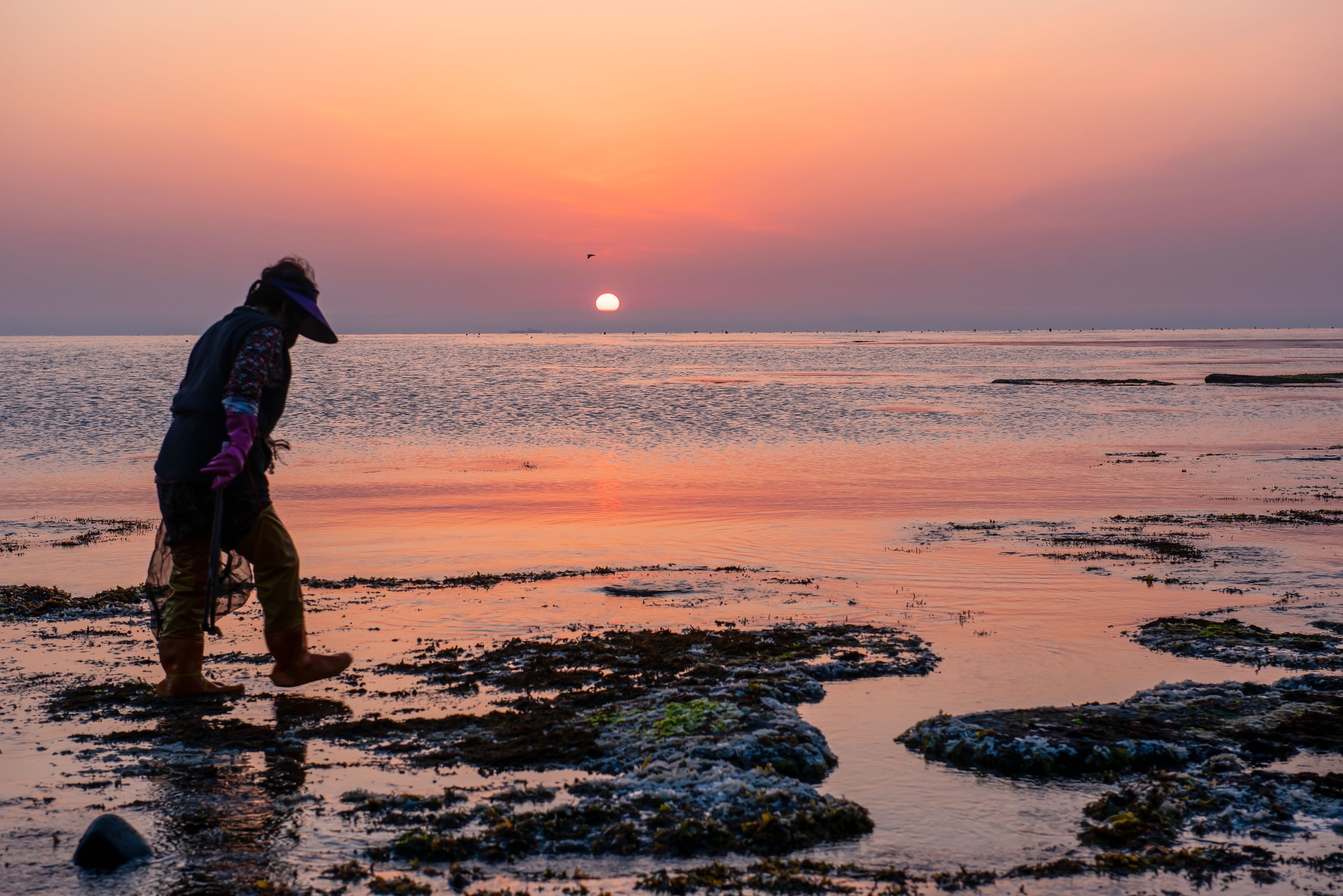 "곰소" 를 잡으러 어둑 어두울때 부터 렌턴불 밝히며 나와 채취하고 있는 어민