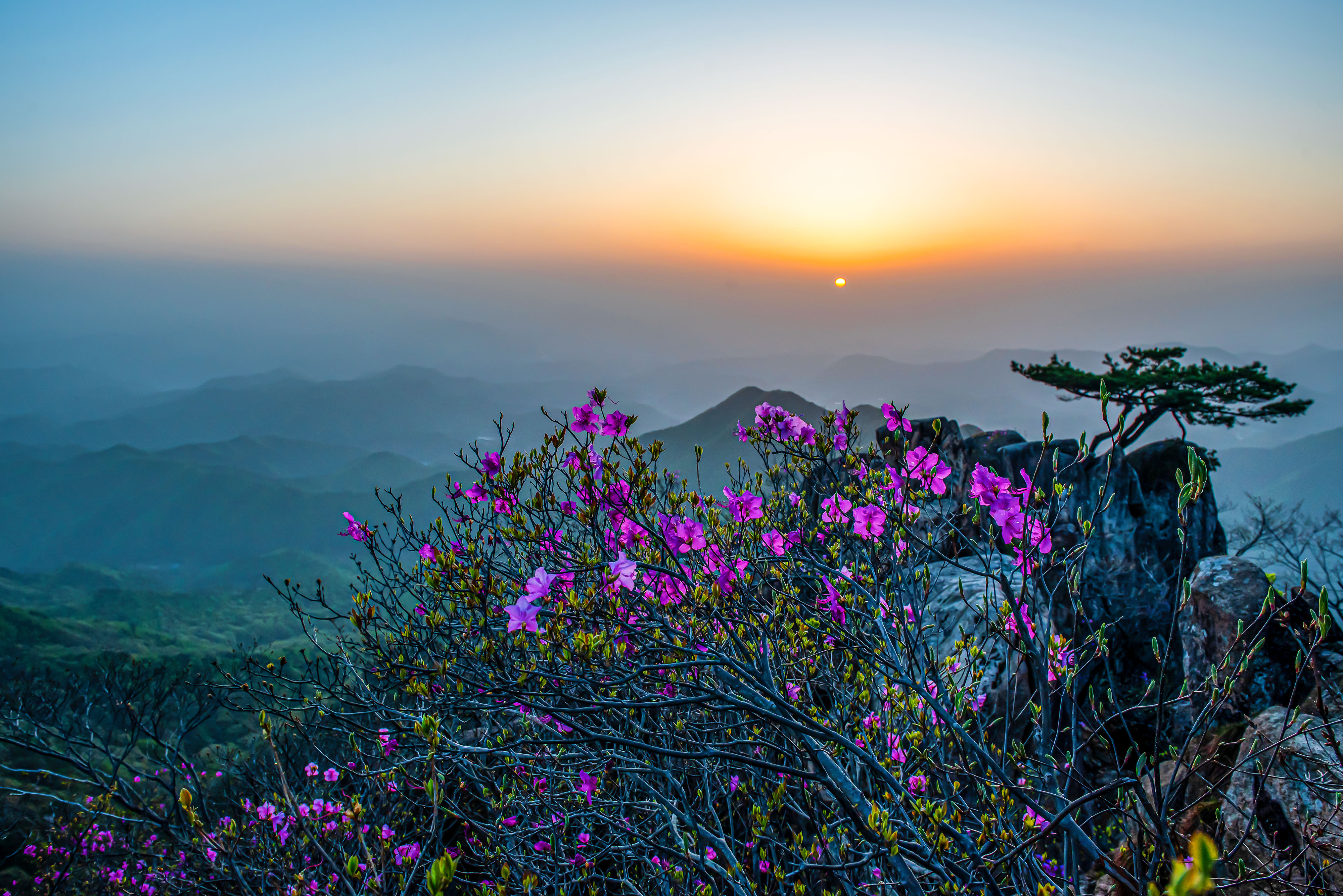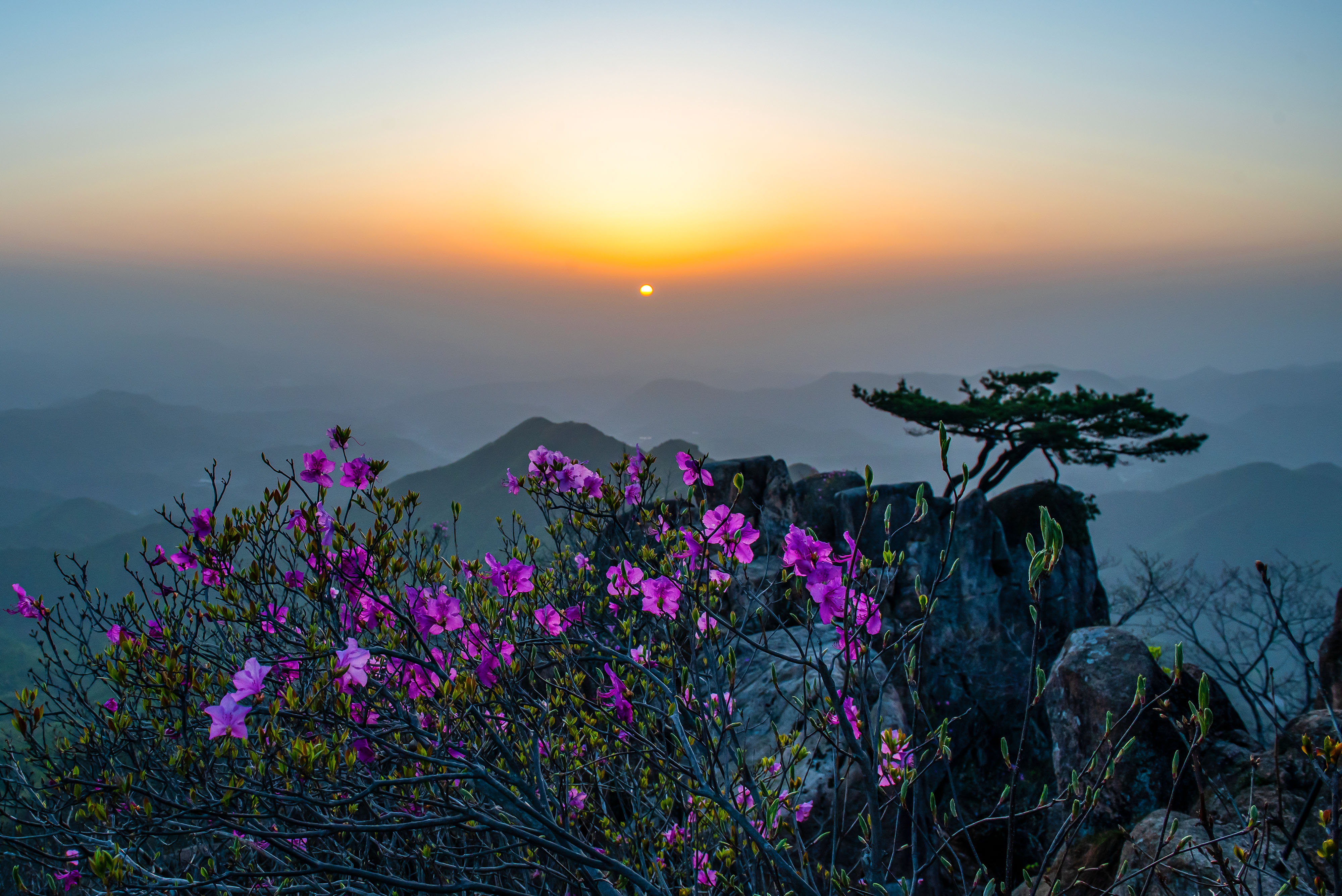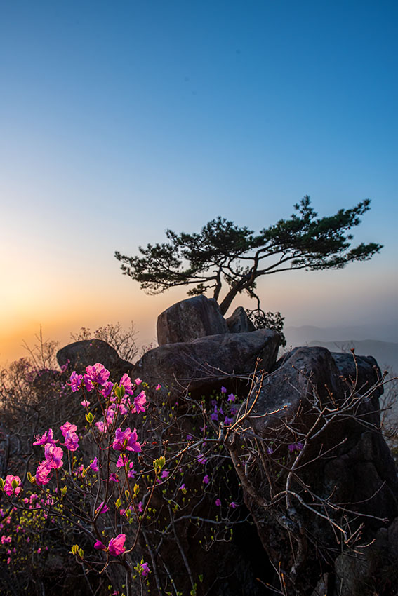 내가 좋아하는 소나무 포인트에서 아침 햇살 받은 진달래 꽃에 소나무를 담은 것으로 만족하며 돌아 섰다.