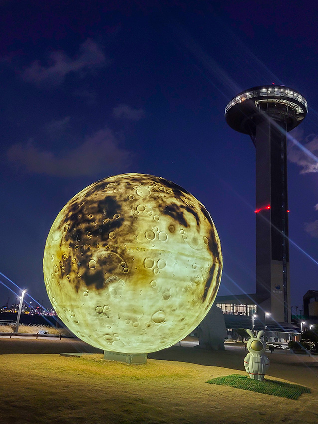 전망대 2층 카페동이 한식당에서 저녁을 먹고 밖으로 나와 달 조형물을 담고 귀가 하였다