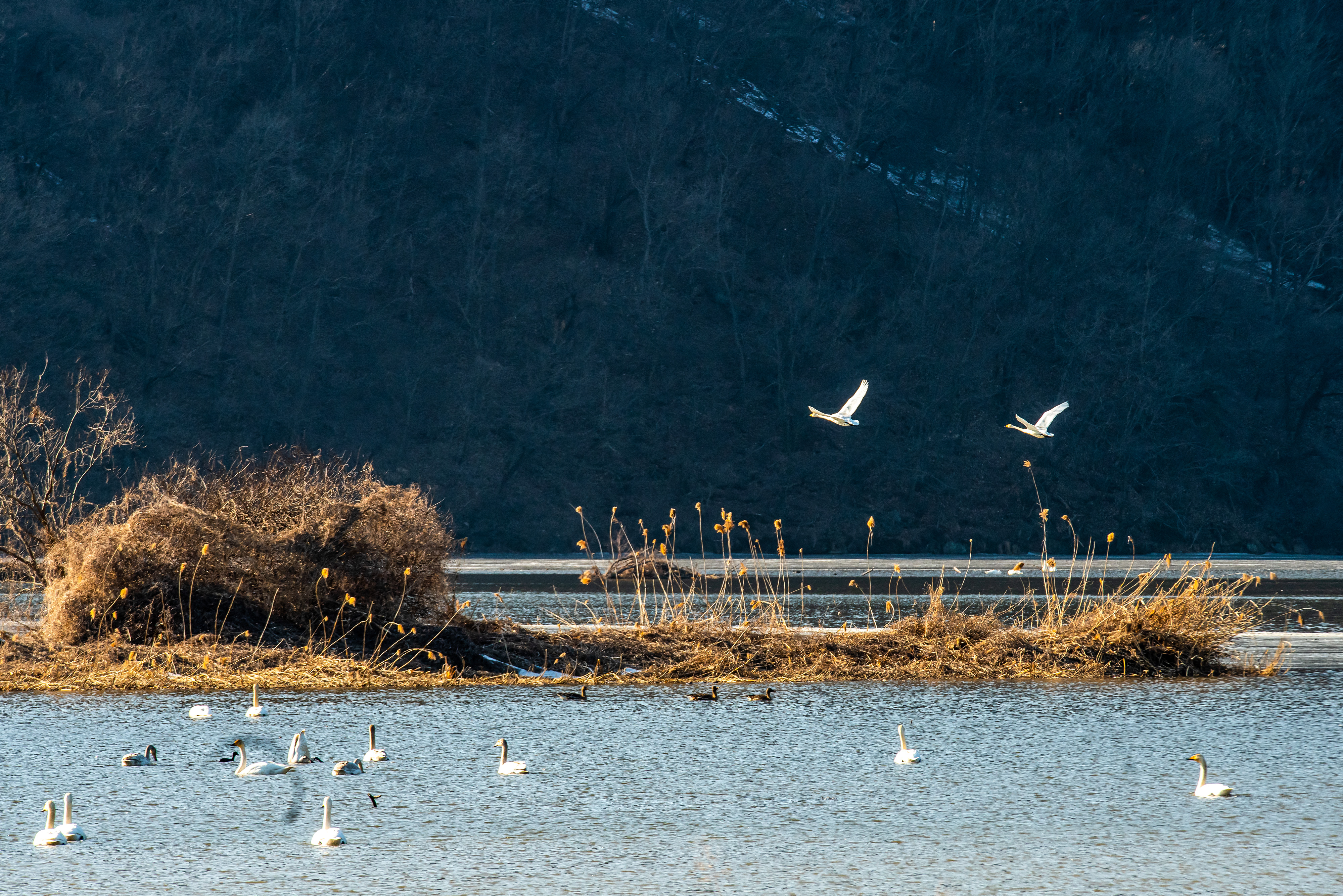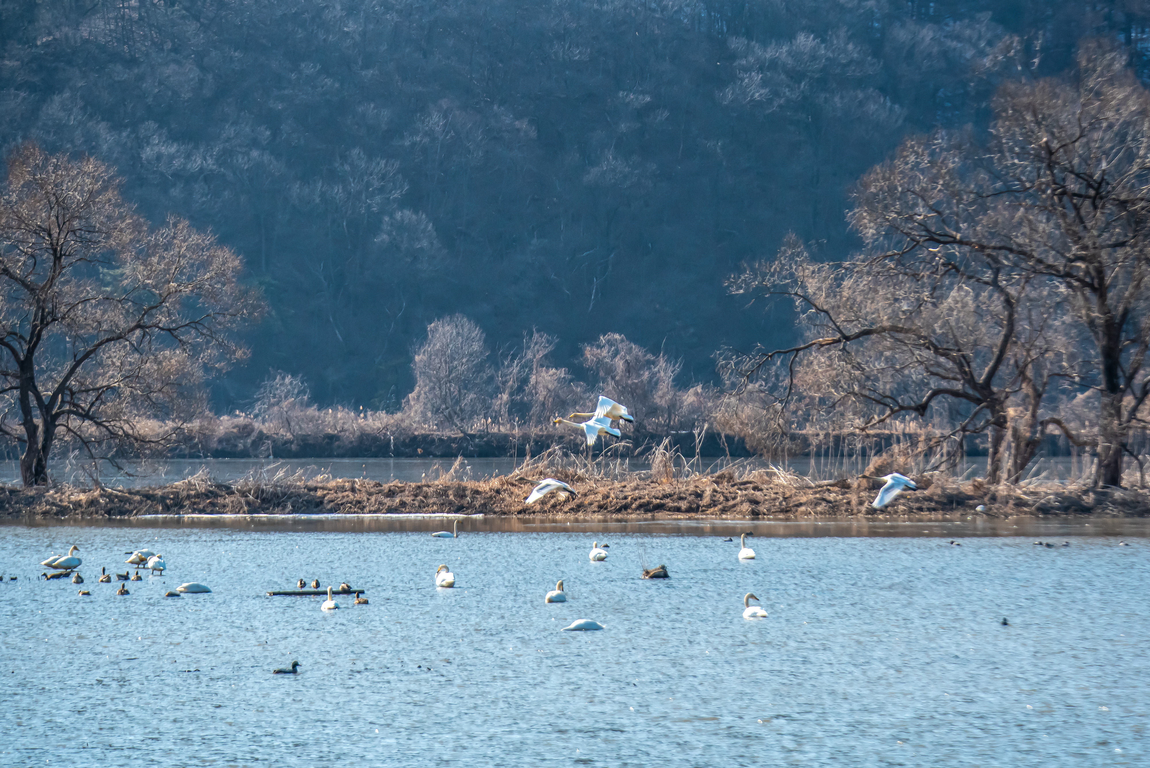 철새들이 반긴다 특히 고니(백조)는 크기가 크기에 짧은 렌즈로